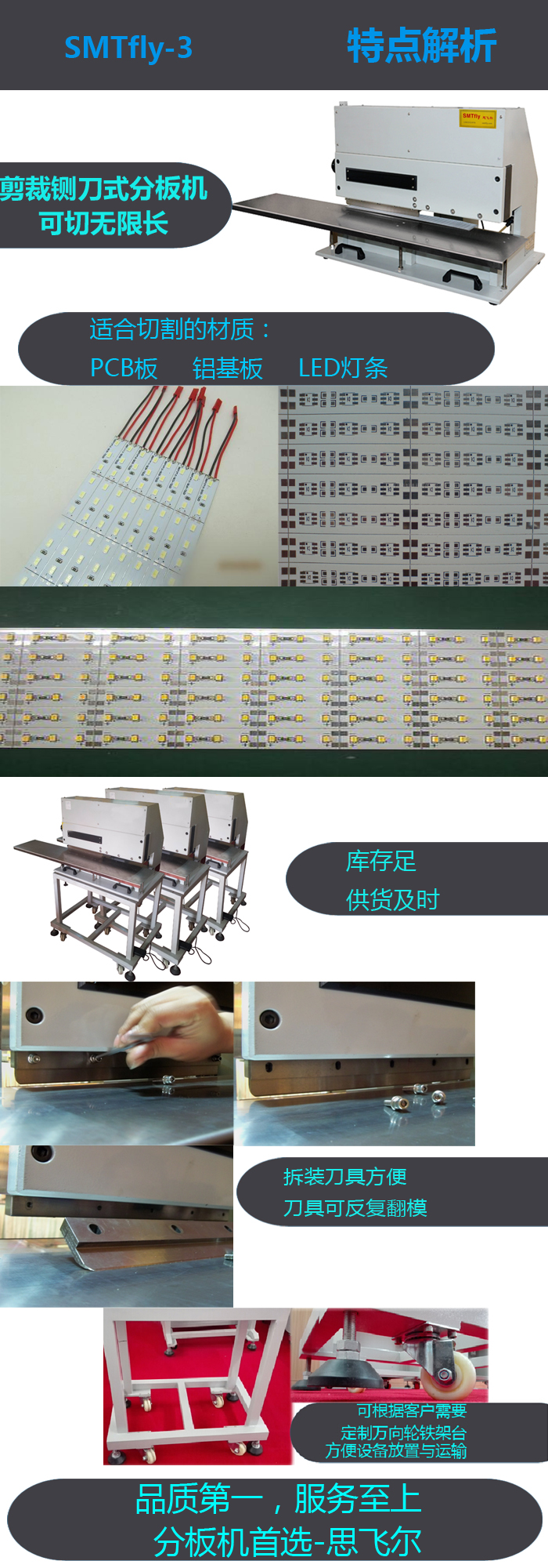 ●適用於各種PCB板,鋁基板,氣動(dòng)式設(shè)計(jì),無(wú)剪切應(yīng)力,特別適用于分割精密SMD薄板,鋁基板等.